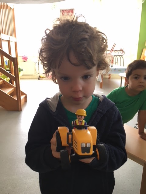 Lou bracht een tractor mee en op Kazimierz zijn sloffen staat een kraan.